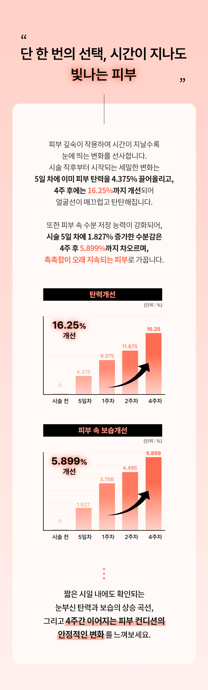 피부속 콜라겐과 엘라틴을 포함하여, 근본적인 피부 개선에 도움을 줍니다.